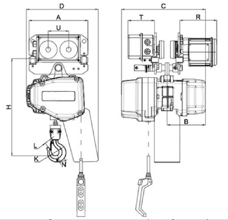 Таль электрическая цепная передвижная двухскоростная HHBB с УСВ (V-тип) г/п 2,0, в/п 6,0м