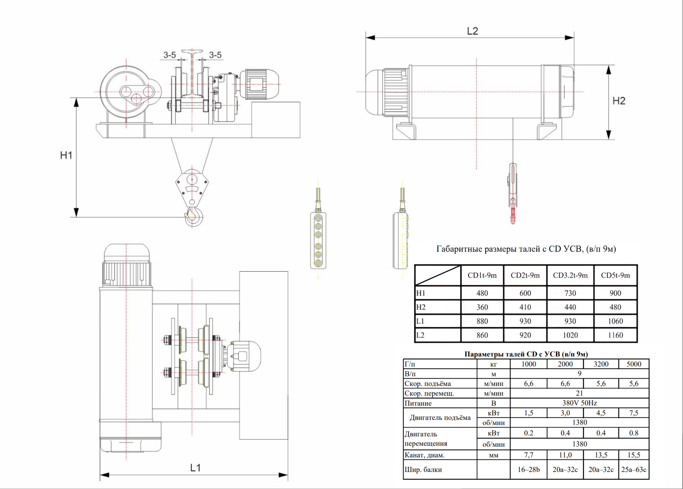 Таль электрическая канатная передвижная БКС CD DL с УСВ г/п 3,2т в/п 9,0м