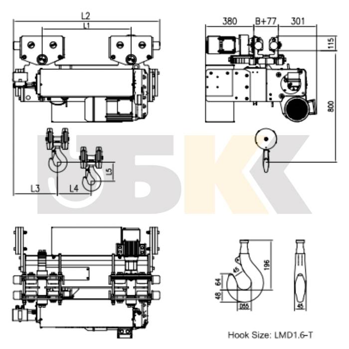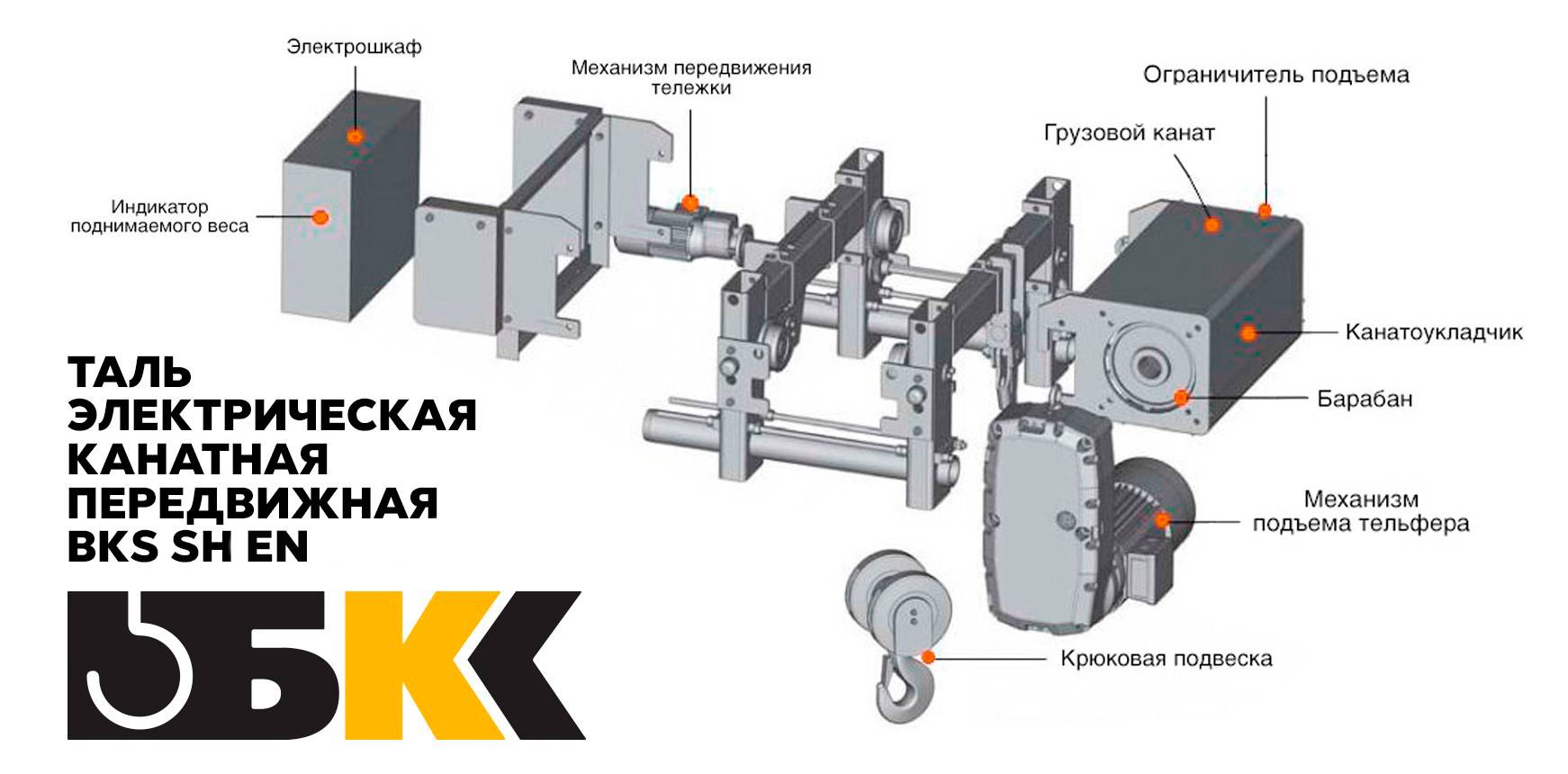 Таль электрическая канатная передвижная BKS SH EN г/п 5,0 в/п 12m