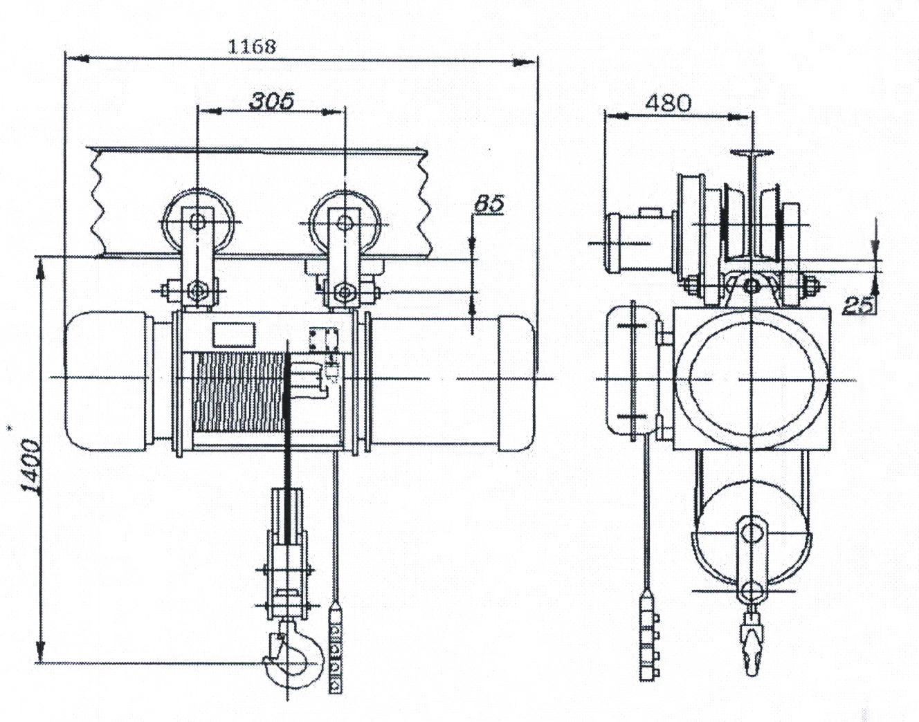 Тельфер электрический канатный общего назначения грузоподъемностью 3,2 тонны высотой подъема 6,3 метра