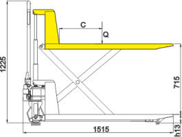 Специальначя тележка с высоким ножничным подъемом (715 мм)