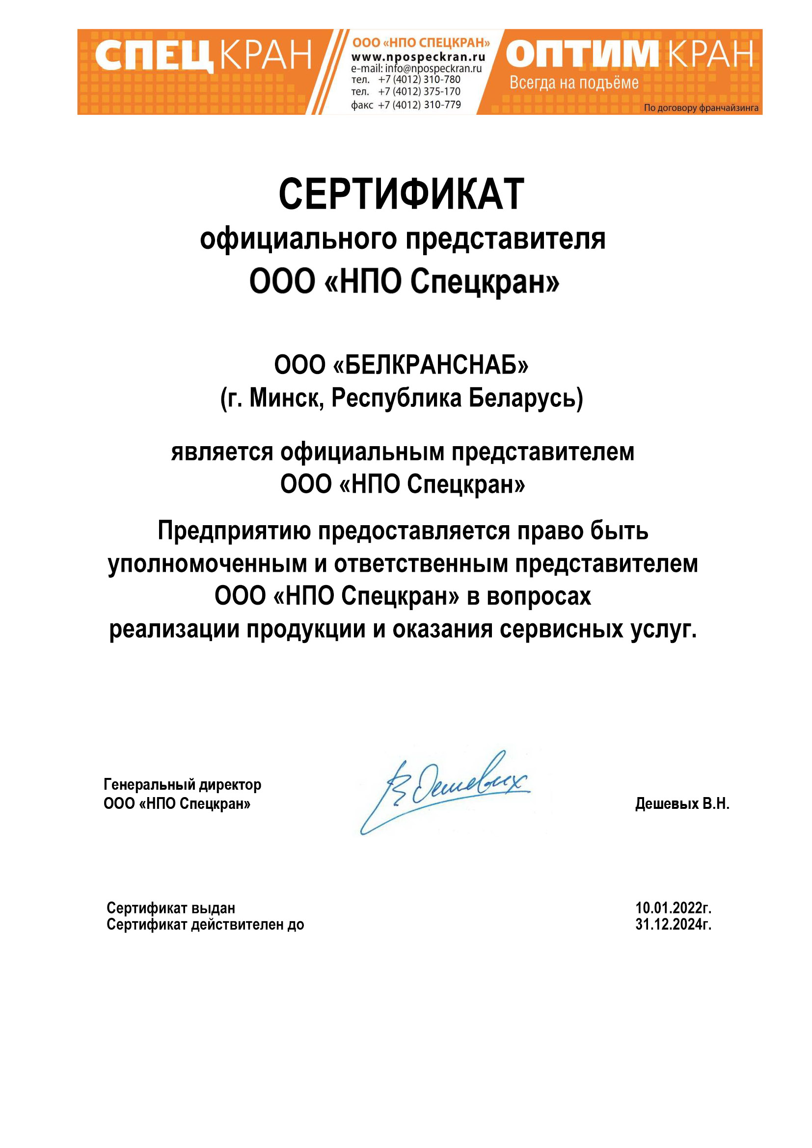 Завод НПО "СПЕЦКРАН" (г. Калининград, Российская Федерация) производит: