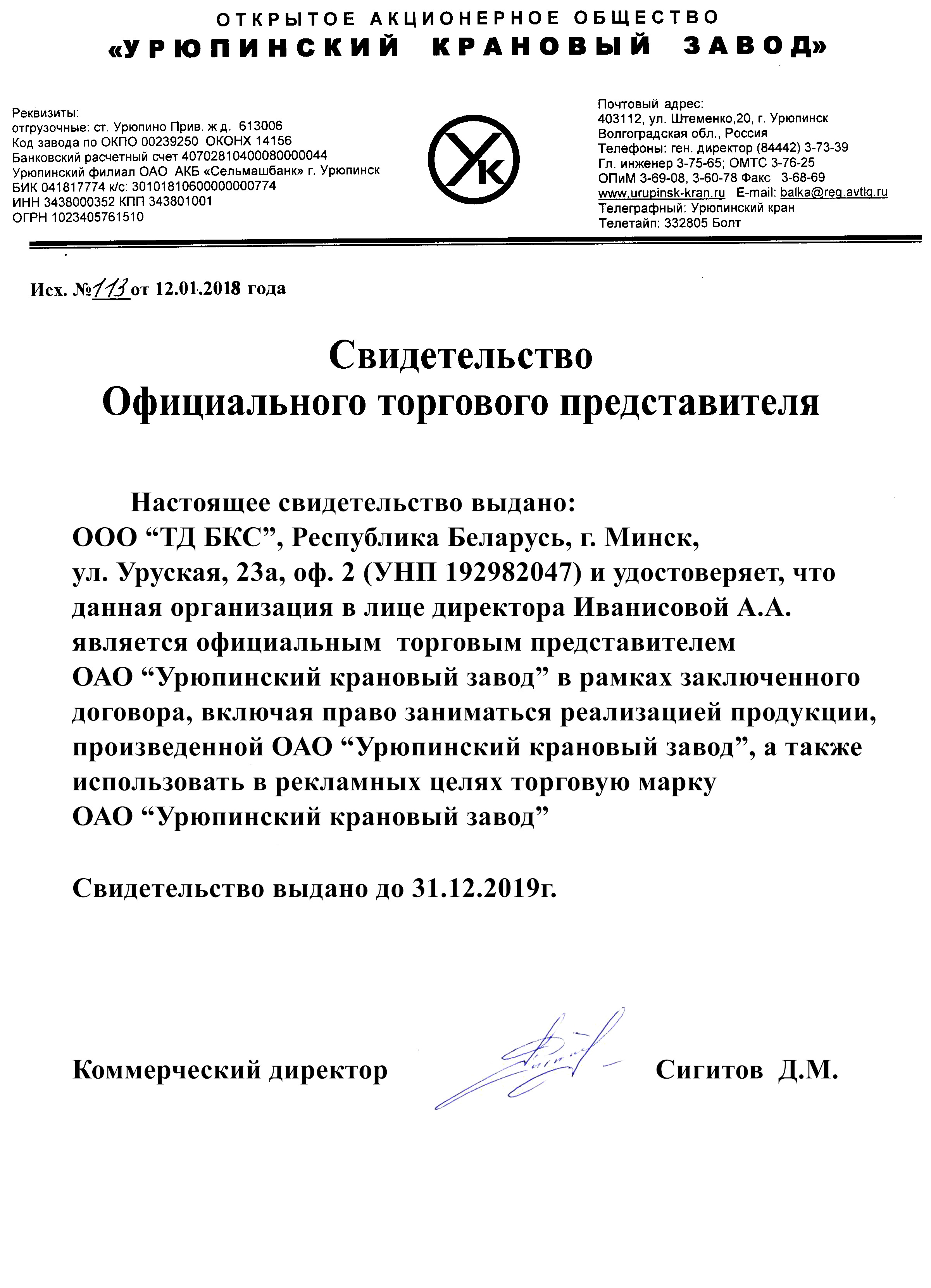 - Доступная стоимость. Предприятие является самостоятельным заводом-изготовителем грузоподъемного оборудования: кранов, электрических тельферов, запасных частей; сельскохозяйственной техники. Поэтому цены установлены без посреднических процентов.