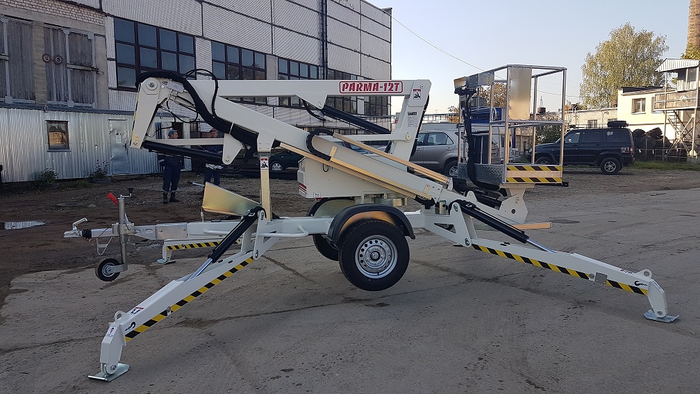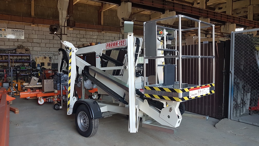 В октябре клиенту отгружен прицепной коленчатый подъемник Parma 12T с высотой подъема 12 метров.